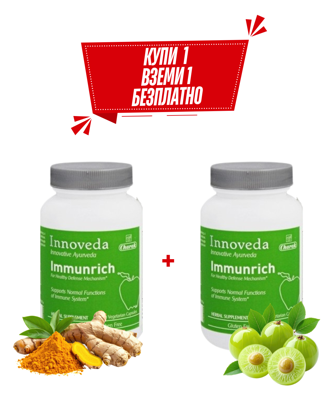 Купи 1, Вземи 1 БЕЗЛАТНО Имунрич - Подпомага поддържането на добра имунна система, Charak Pharma, 60 вег. капс., най-добър до 31.08.2026